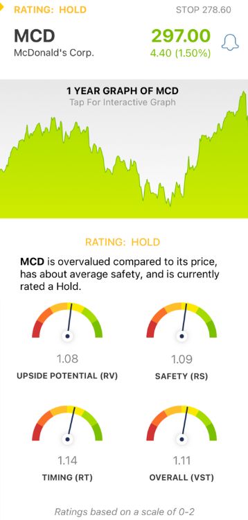 Each rating sits on an easy-to-interpret scale of 0.00-2.00 with 1.00 being the average. You’re even offered a buy, sell, or hold recommendation for any given stock at any given time based on its overall VST rating. As for MCD, here’s what we uncovered for you: